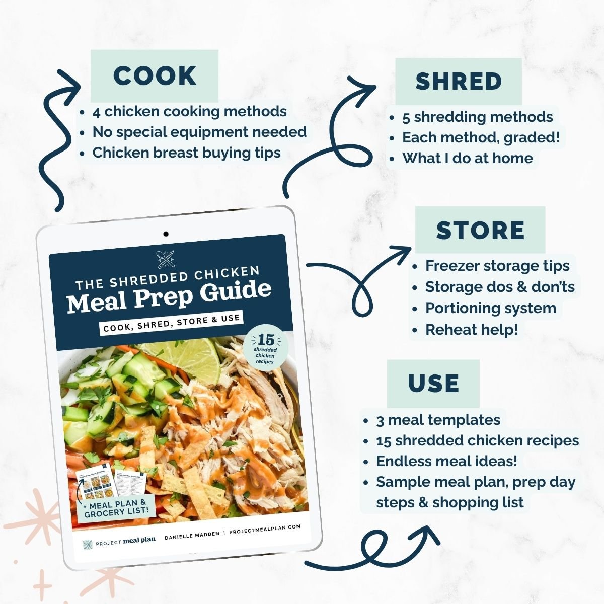 I've been baking and shredding chicken for meal prep for years, and I was astounded by the number of helpful tips and tricks I learned in this guide! I absolutely love the creative options that Danielle has given us in this meal prep guide.