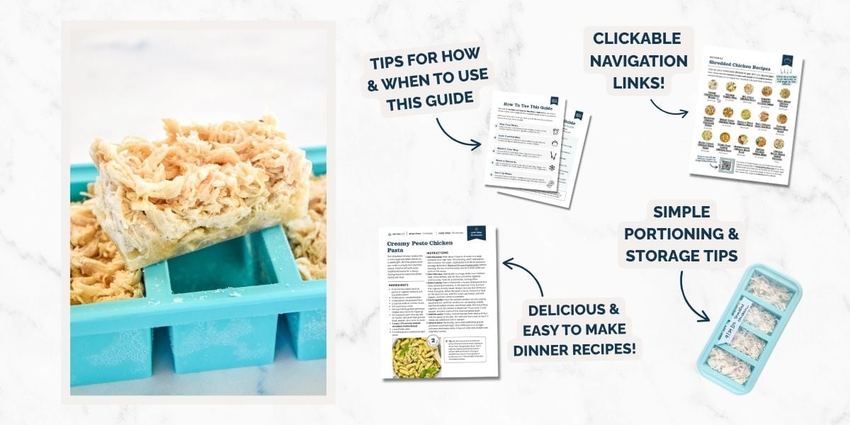 This 52-page digital guide shows you how to cook, shred, store, and turn chicken into stress-free meals the whole family will love!